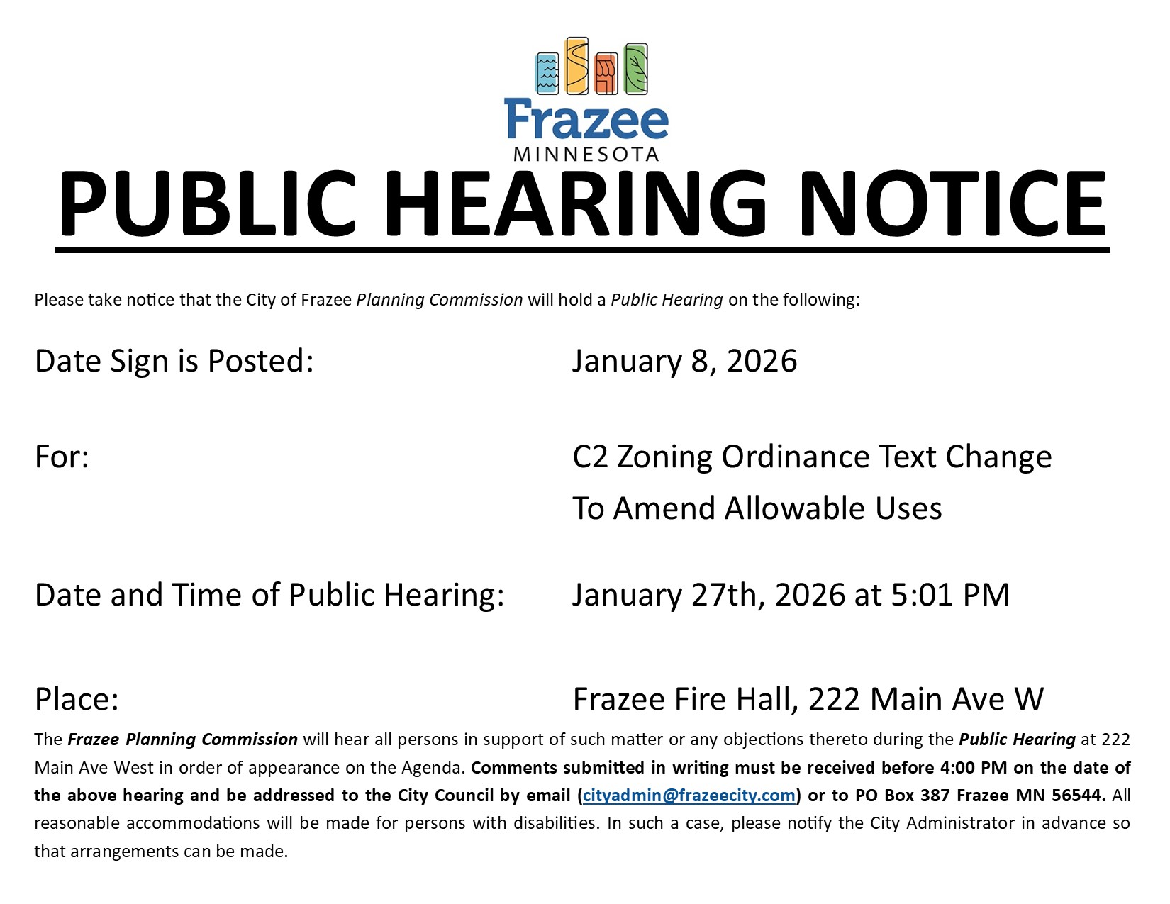 Public Hearing: C2 Zoning Ordinance Text Change To Amend Allowable Uses